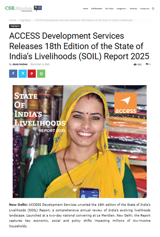 ACCESS Development Services Releases 18th Edition of the State of India’s Livelihoods (SOIL) Report 2025